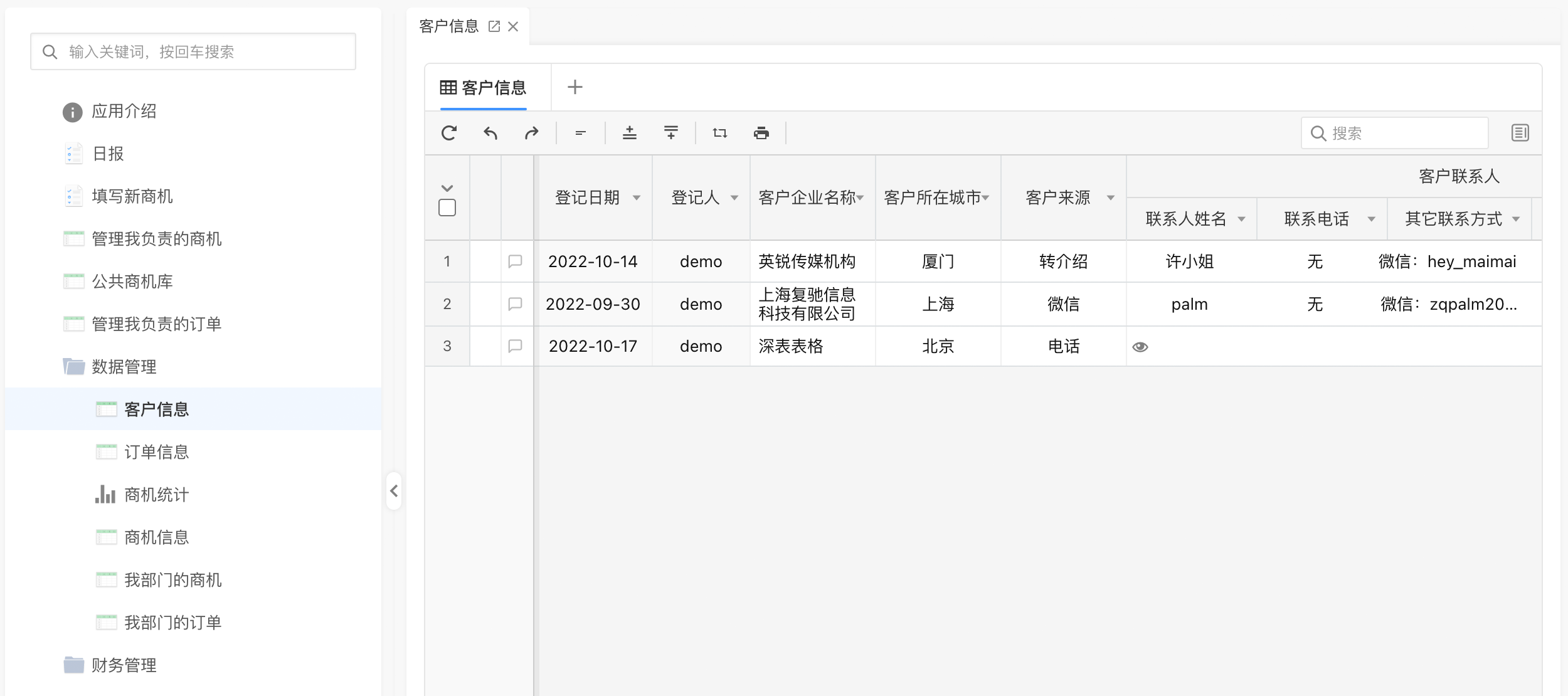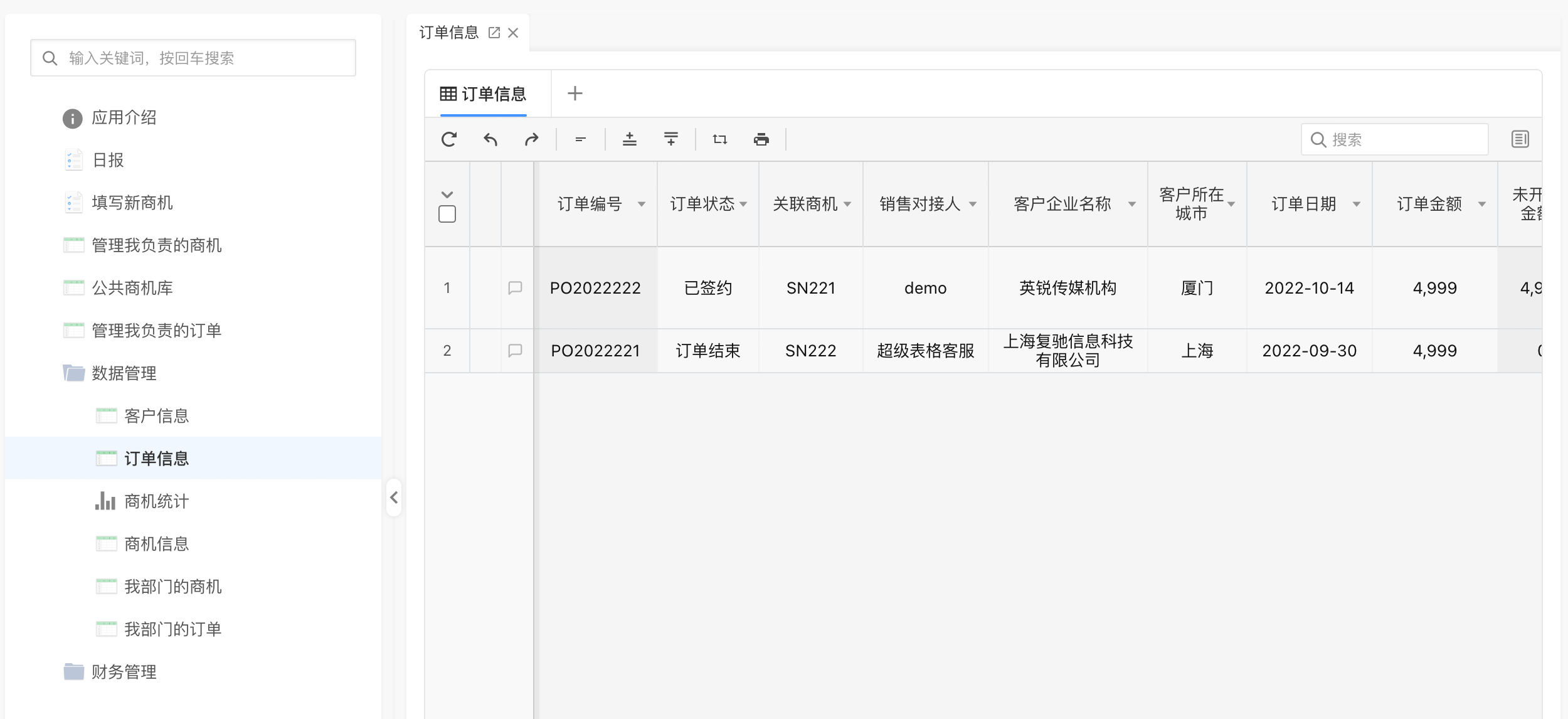 对客户信息、订单信息、商机信息的统一有序的管理,在企业部门内更好的利用信息资源。